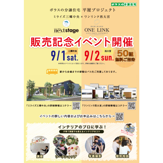 ミライズ三郷中央×ワンリンク西大宮 平屋プロジェクト 販売記念イベントを9/1(土)・2(日)に開催いたしました!