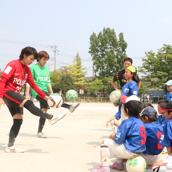8月2日(日)、『浦和レッズレディース訪問レッスン』を開催。 多くのご応募の中から、今回はさいたま市立栄和小学校にて練習を行う"栄和サッカー少年団"へ訪問しました。