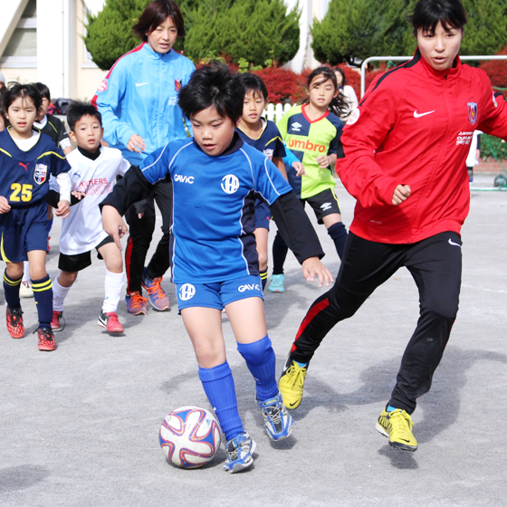 12月6日(日)、"江戸川一之江キッカーズ"が練習を行う江戸川区立一之江小学校へ浦和レッズレディース 千葉望愛選手と池田咲紀子選手がやってきました。