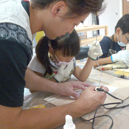 講師の方に教わりながら、ハンダゴテに挑戦です!