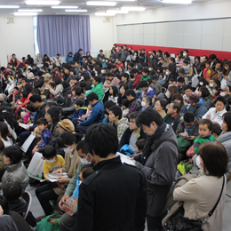 場所は変わって、建物内のメイン開場。用意した200脚のイスも瞬く間に埋まり立ち見の方も。