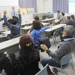 当日は3つのテーマのセミナーも同時開催。こちらは「大人の体力作りセミナー」の様子から。実際に身体も動かしながら楽しく受講されています。