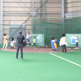 イベント当選者限定「室内練習場見学」風景!バッターボックスで記念撮影。