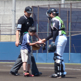 試合観戦だけでなく、室内練習場の見学やファイターズグッズ抽選会、試合後の記念撮影の他、応募多数のため抽選となってしまいましたが、始球式、キッズスターター、親子ボールボーイ体験と普段なかなか参加できないイベントを体験していただきました。
