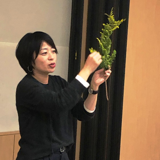 講師は花屋四季旅人の小松先生。クリスマスリースの意味や由来のお話からレッスンは始まりました。