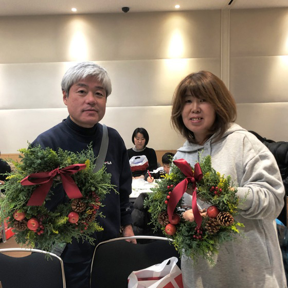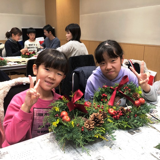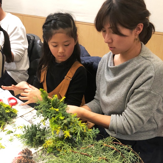- ・生の材料でリースを作れて感動しました。クリスマスが楽しみです。ありがとうございました。