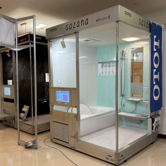 展示品のシステムバスには実際に靴を脱ぎ中に入ることもできました!