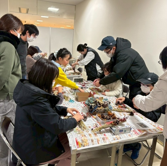 大盛況だった正月飾りしめ縄づくり体験の様子