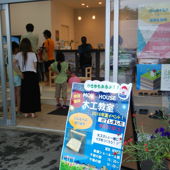 昨年に引き続き今年も8/27(土)MOK HOUSE新座ショールーム前にて『イスづくり木工教室』が開催されました。