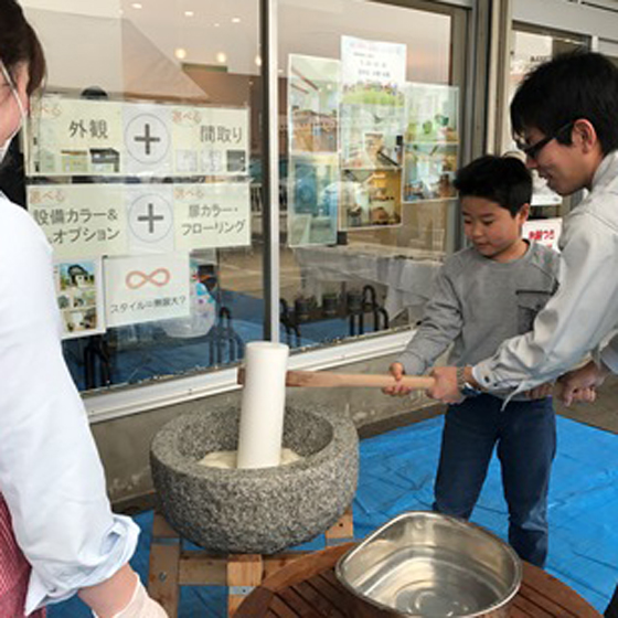 三連休の最終日である1月9日(月・祝)に、新座ショールーム店頭におきまして、恒例の餅つき大会を、11:00、13:30、15:00の3回に分けて開催いたしました。