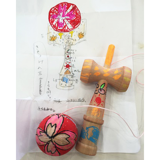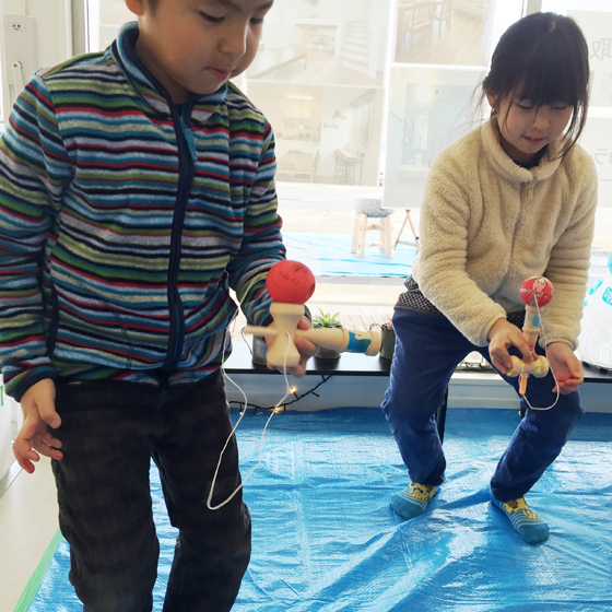 今回は、「餅つき大会」のほかに、「オリジナルけん玉」を作るイベントも同時開催いたしました。最近、小学校でも、「昔の遊び」ということでけん玉を紹介するらしく、人気があるのだとか。自分で作り上げた世界で一つのけん玉で、見事な技を披露してくれるお子さんもいました。