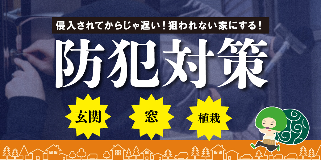 侵入に5分かかると泥棒の7割は諦め、10分以上かかると侵入者のほとんどが諦めると言われています。侵入されにくいポイントをチェックし防犯対策を強化しましょう。