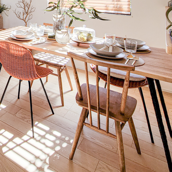 天然木をふんだんに使用した平面スポークが特徴的な人気のチェア