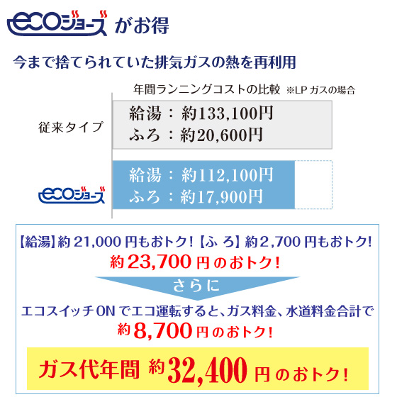 ※都市ガスの場合、別途ガス工事代がかかります。