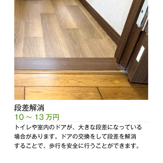 - ・段差の解消(スロープ設置、敷居の撤去など)