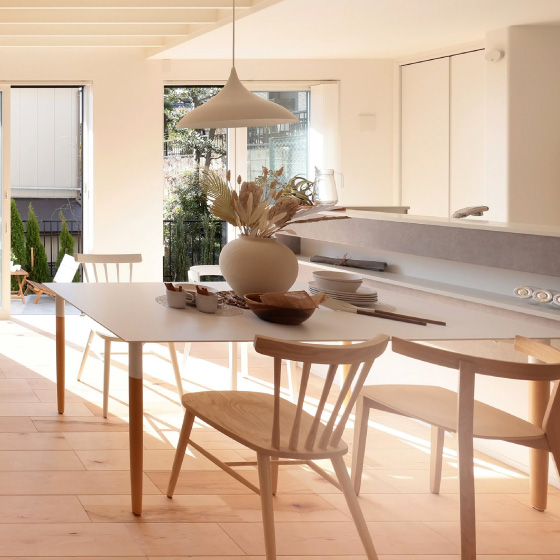シンプルなデザインのダイニングペンダントは、空間にさらなる広がりをもたらします。