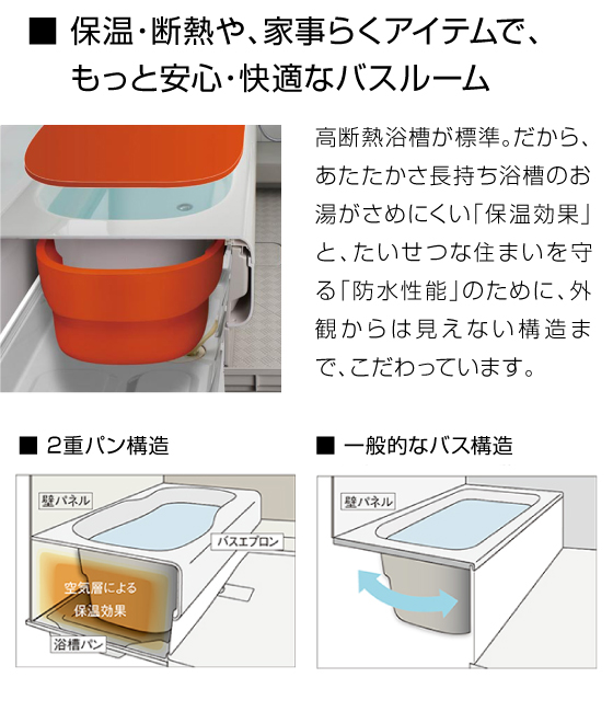■標準工事内容:既存ユニットバス解体、配管切り廻し、電気配線、追炊配管、新規ユニットバス取付、窓枠加工、配管仕上げ、電気仕上げ、既存給湯器利用、浴室入口枠取付、浴室側幅木補修、産業廃棄物処理費(ユニットバス交換の金額については、1Fのユニットバスからの交換を想定しています。)
