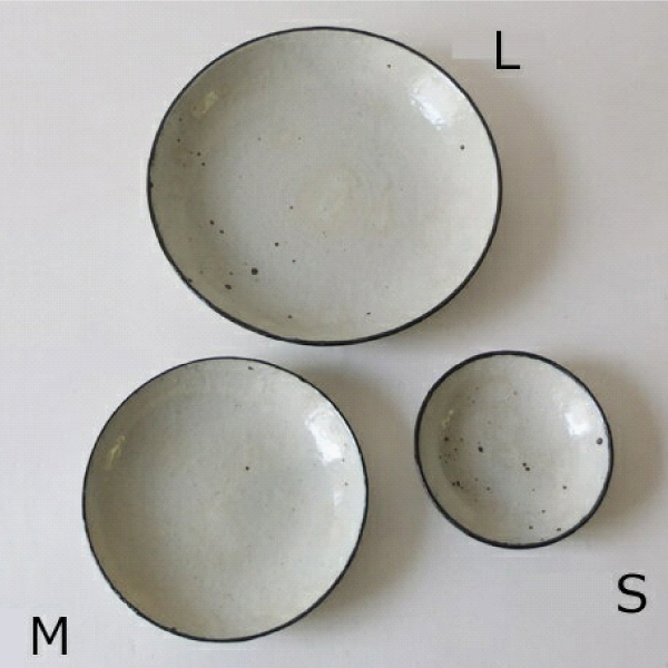 - 艶のある粉引のリムシリーズは、土に含まれる鉄の黒点模様と土の感触が手に馴染む温かな風合いが特徴