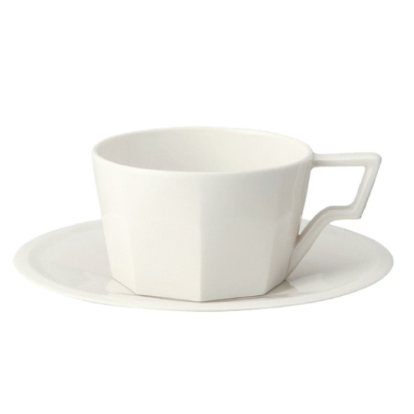 - 八角形をベースに構成されたシャープなラインと陰影が美しいデザインのコーヒーウエア「OCT(オクト)」。カップのハンドルはシャープな印象ながら持ちやすく、カップ口縁は薄く口当たりが良いように仕上げられています。
