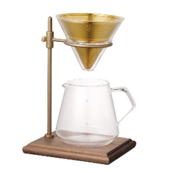 - ゲストの多いときや家族と一緒に本格派なコーヒーを楽しみたい時に。深みのある色調のウォールナットと、経年変化が愉しめる真鍮を組み合わせた重厚感のある佇まいのブリュワースタンド。