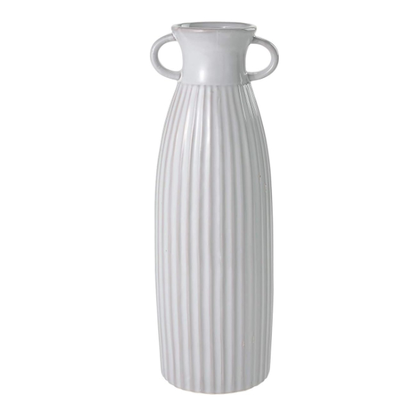 グレーカラーが都会的な雰囲気の花瓶。釉薬の下地にペイントを施しナチュラルテイストを表現しています。