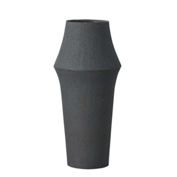 マットブラックの花瓶です。個性的なフォルムと風合いが和の花材もモダンに引き立てます。