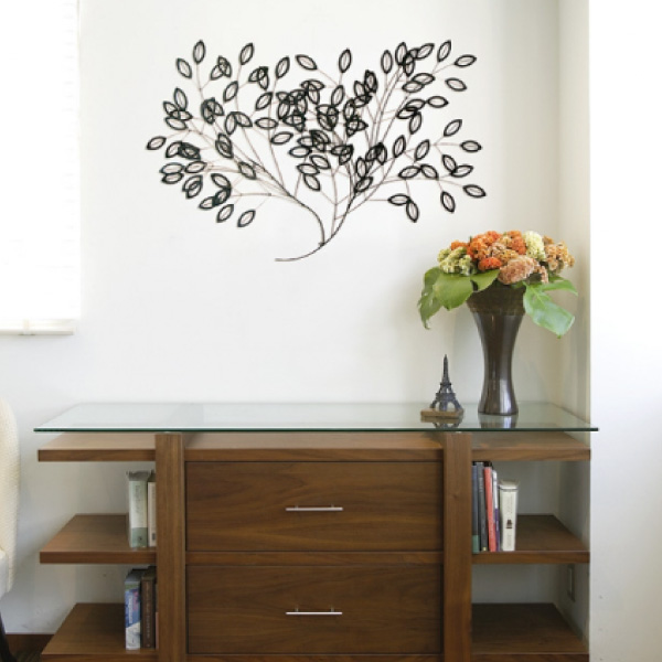 線の細い黒い雑貨や陶器系の花瓶を使用し和風なお盆・網目状の小物入れや、あずき色のクッションを取り入れました。