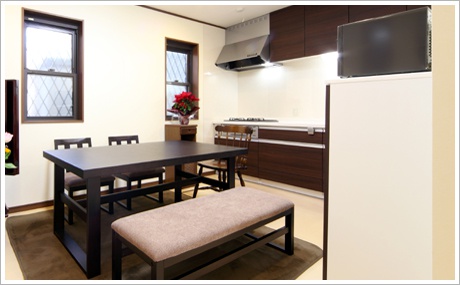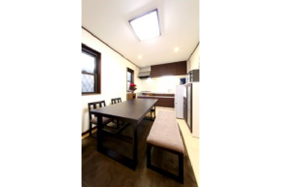 既存の間取りは、キッチン/ダイニングスペースとリビング空間が階段で区切られていました。弊社提案の動線を考えたプランにより、リビングからダイニング/キッチンまで繋がった間取りを可能にしました。