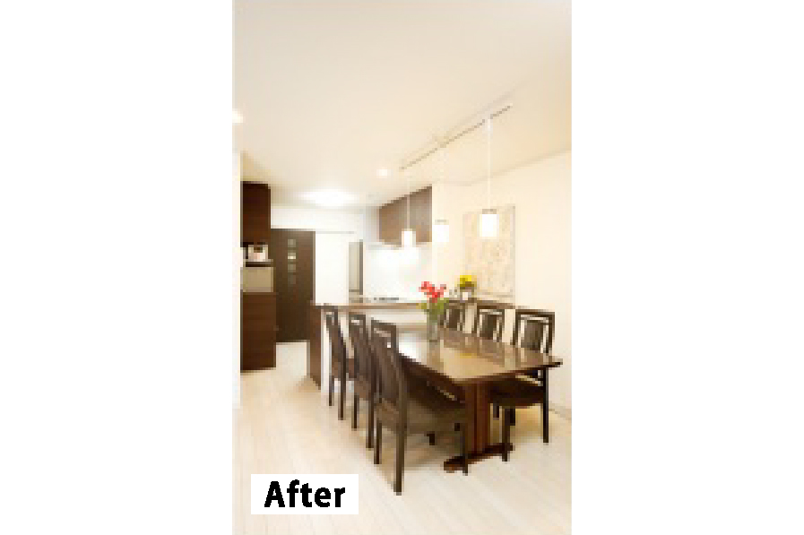 息子さんと娘さんがお孫さんを連れてよく遊びにくるので、全員が集まっても快適に過ごせるよう、和室を洋室にしてリビングと一体化。広い空間を実現している。間仕切りの引戸を閉めれば、プライベートスペースへと変わります。