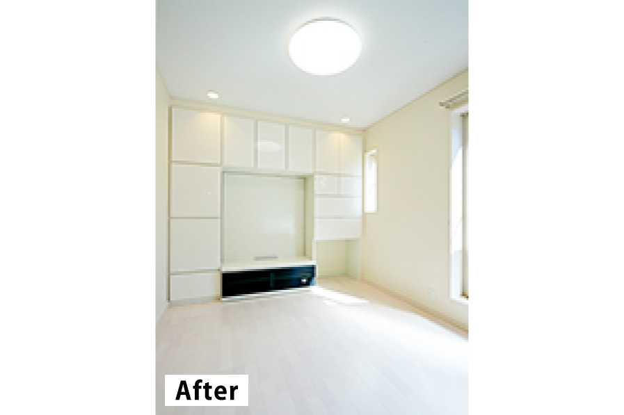 | 目的/動機 | 目的/動機:15畳の空間を素敵なLDKに ポイント:荷物の多さをカバーするシステム収納を設けて 何かと荷物が多くなってしまう子育て家族の強い見方!テレビ周りのシステム収納。これは今回のリフォームでご主人が一番こだわったポイントだそうです。荷物をしまって置くのはもちろんの事、空間をスタイリッシュにスッキリと見せてくれる効果もあります。右側の扉部分は引き出す事でライティング用テーブルにもなります。 |