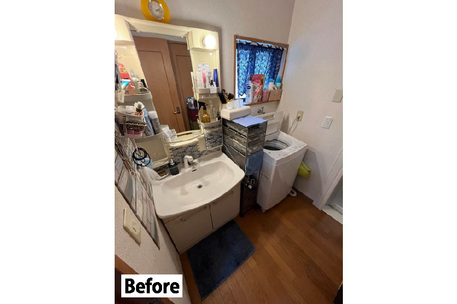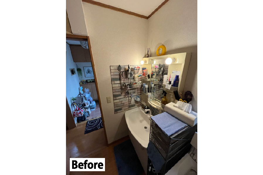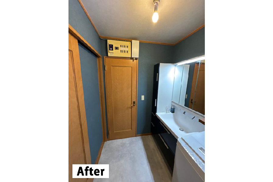 | 目的/動機 | 壁クロスをネイビー、床を薄いグレー、化粧台の扉色を深いグレーとして 落ち着きとメリハリのある洗面室となりました。 キレイを保ちやすく、癒される空間に大変身。 |